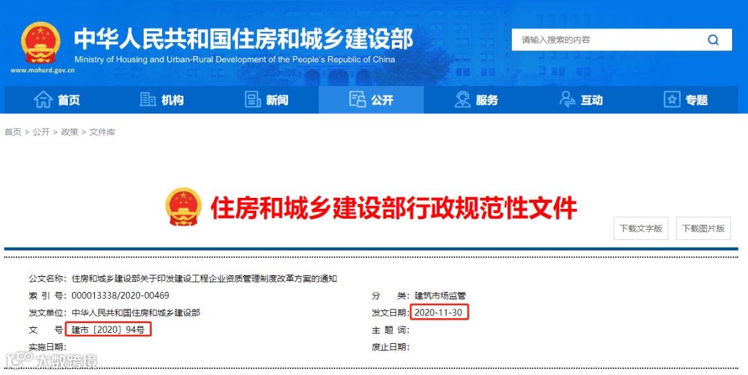 该文所说的《资质改革方案》是早在2020年就已下发的文件,文件是住建部于2020年11月30日印发的《关于印发建设工程企业资质管理制度改革方案的通知》(建市〔2020〕94号)