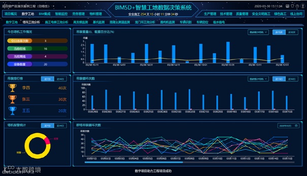 塔机监测系统是集互联网技术、传感器技术、嵌入式技术、数据采集及存储技术、数据库技术等高科技技术为一体的综合型仪器。该仪器能实现多方实时监管、区域防碰撞、塔群防碰撞、防倾翻、防超载、实时报警、实时数据无线上传及记录等功能,特别是设备与广联达智慧工地平台搭配使用,可以做出塔机运行过程的工效分析,帮助项目准确掌握塔机的运力和工作饱和度,为现场管理提供决策依据。