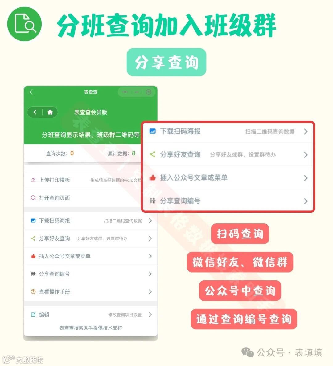 无论是成绩查询、分班查询、录取查询、准考证查询、证书查询或其他查询需求,只需进入「表查查丨定制表格数据搜索助手」便可制作。