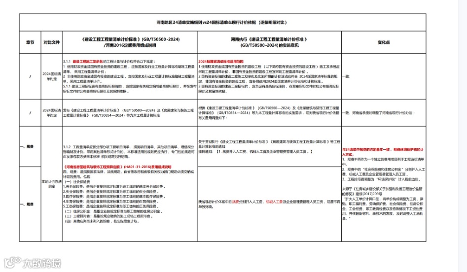 河南现行计价依据有关费用调整,主要在于规费调整方法、安全文明施工措施费拆分方法、细化安全生产措施费工作内容;不强制措施项目费用按分拆表拆除费用等;从而提升清单的准确性与适用性。