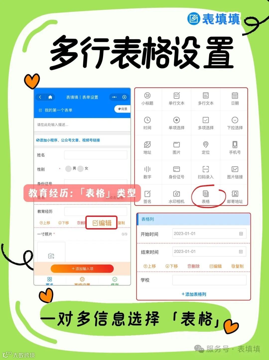 表填填表单完全自定义,支持扫码填写、嵌入公众号中,填表有实时通知,可多人管理。