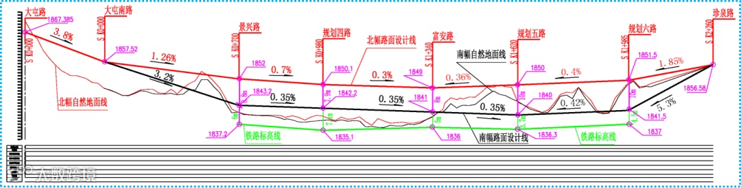 安宁市大屯东片区屯川路工程是区域重要的城市主干路,线路起于大屯路,止于珍泉路,全长2260.626米,设计时速40km/h。工程建设内容涵盖道路、高挡墙、综合管廊、交通设施、给排水系统、照明工程及绿化工程等多个专业领域。由于项目体量大、沿线地形地貌复杂且垂直梯度差异显著,给工程设计与施工带来了诸多挑战。