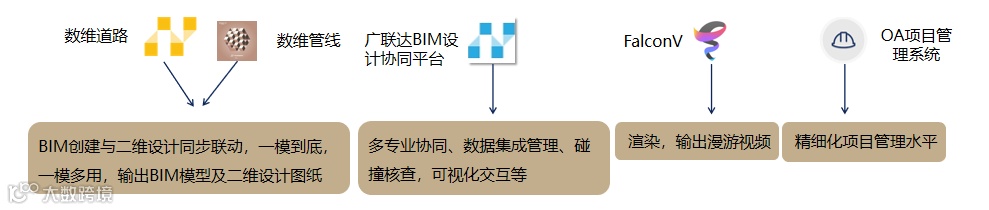 (四) 多专业BIM正向设计:运用数维道路、数维管线等软件开展正向设计,实现模型与二维图纸同步联动、相互验证,高效输出高质量BIM模型、设计图纸及漫游视频。