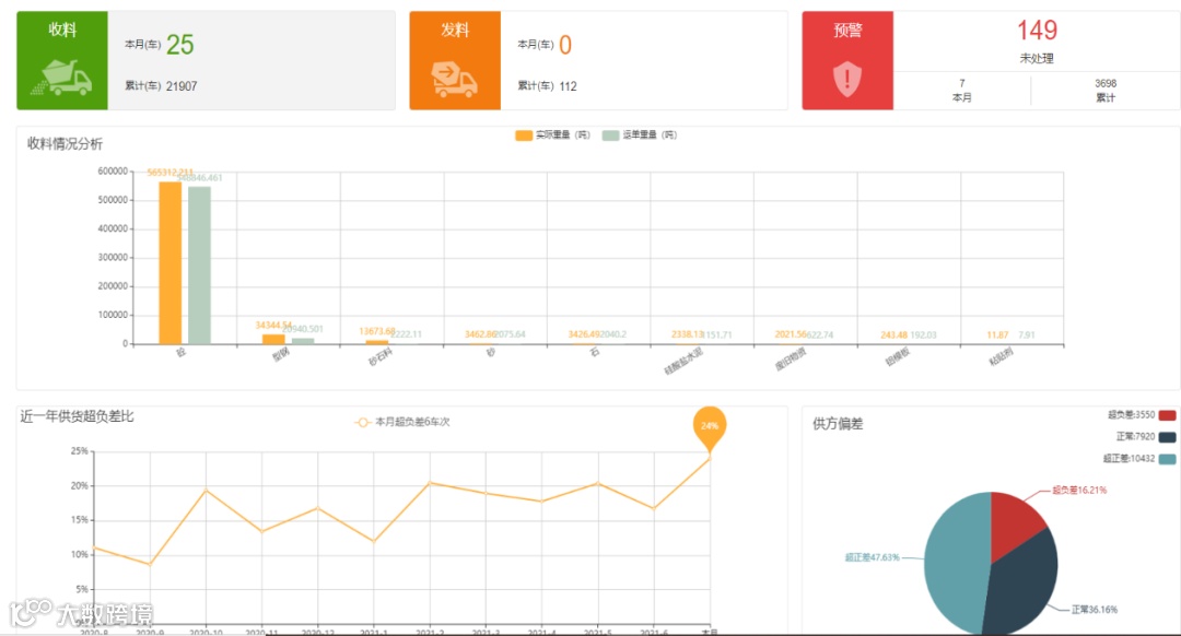 而系统通过移动APP进行实时动态数据监测,支持物资部门随时了解材料进场情况,如出现供货亏方情况时手机app收到通知进行处理,网页端后台对于处理记录均可查询。