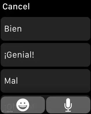 点击 Apple Watch 上的“回复”,用户并不需要任何设置,你会发现预设的信息也变成了西班牙语。