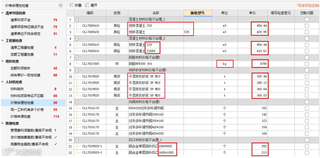 ②钢筋材料价格不合理?风阀材料价格与规格不符?我也能直接提醒~