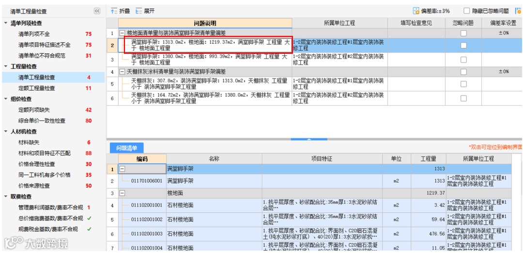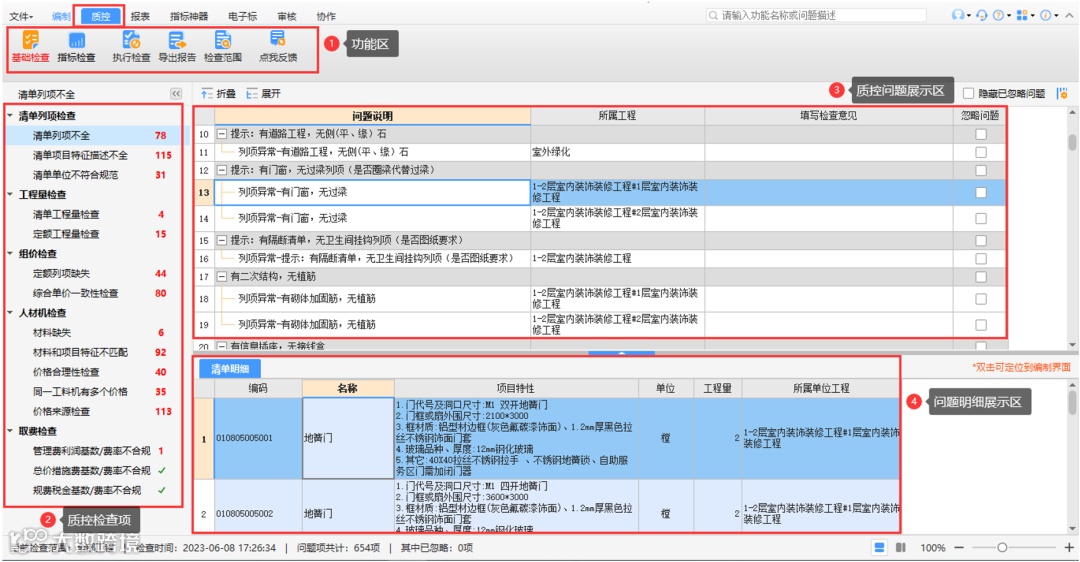质控所有问题,均可双击返回定位至对应清单/子目/人材机进行快速修改。