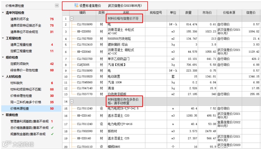 自动核查当前工程市场价,是否使用了规定期数的信息价格,保证信息价上价正确性