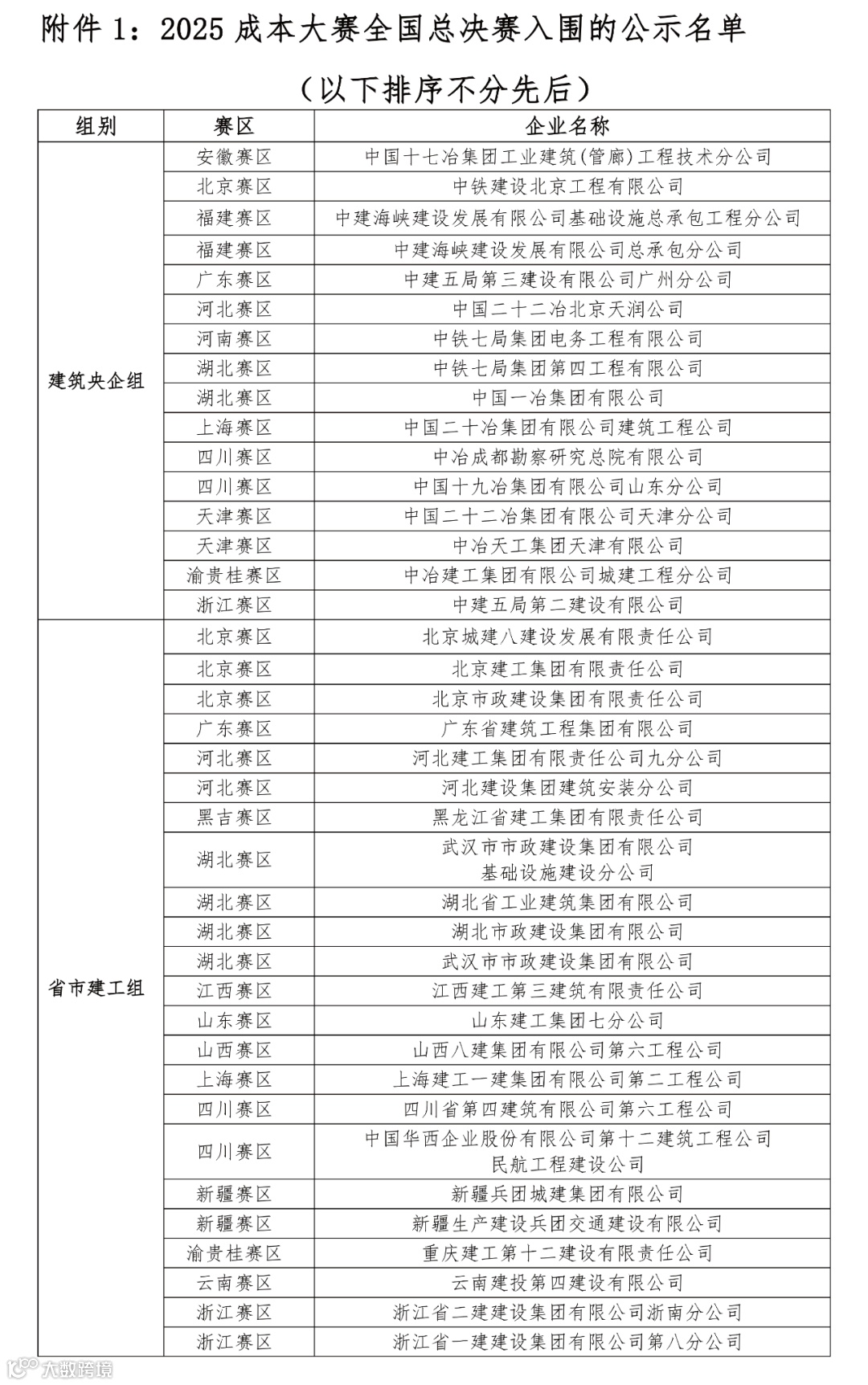 关于2025施工企业成本管控数字化大赛全国总决赛入围名单、全国优秀案例、赛区赛优秀案例的公示