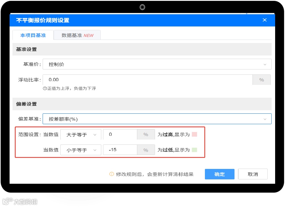 * 从总价-分部分项清单依据预警范围,自动预警提示