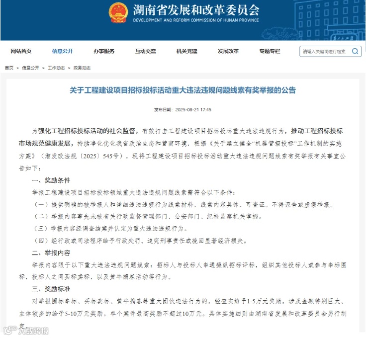 3、在招投标检查上,进行招标投标活动重大违法违规问题线索有奖举报。