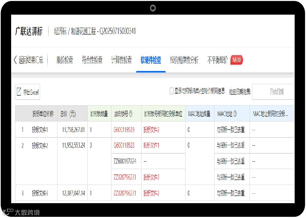 3、经济标严查串通投标清单,如同一设备、加密锁、网络有重复情况。