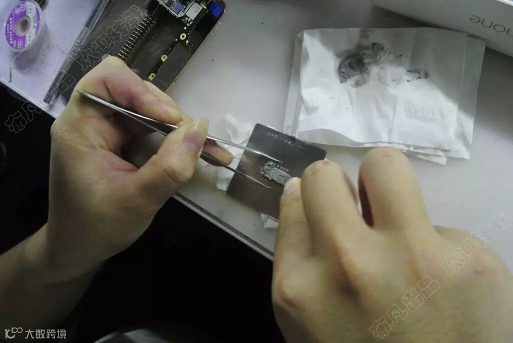 iPhone 6这一台苹果的闪存芯片还是老样子由海力士,闪迪,东芝等老牌厂商供应。读写速度还是相当可以的,升级内存呢就是把这块芯片替换掉就好了。 有的人就要问了6代不是说硬盘,基带CPU,码片,指纹,A8主CPU有加密的嘛,怎么能单换。是的传统方法来改内存的话就得换一套芯片,但是现在不一样了,出了硬盘序列号读写设备的神器,可以单换硬盘了,大家稍微懂一点的封釉可能都知道,苹果现对6代的激活验证机制是硬盘序列号,手机IMEI串号,还有指纹和CPU相匹配才能激活正常使用,每一个硬盘都有不同的序列号,换成别的不是一套的,手机就激不活没法正常使用,只需要把要更换的128G硬盘序列号改成和原来我16G硬盘序列号一样的就可以正常验证激活了。
