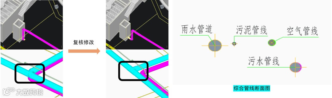 综合管线:建立完整的管道、桥梁模型,直观展示管线走向与标高,提前发现并解决尺寸、结构错误,优化设计。