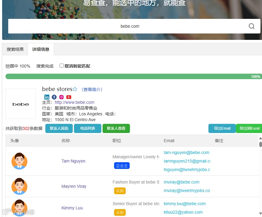 一键挖掘采购商的联系方式(邮箱/电话/社媒主页)