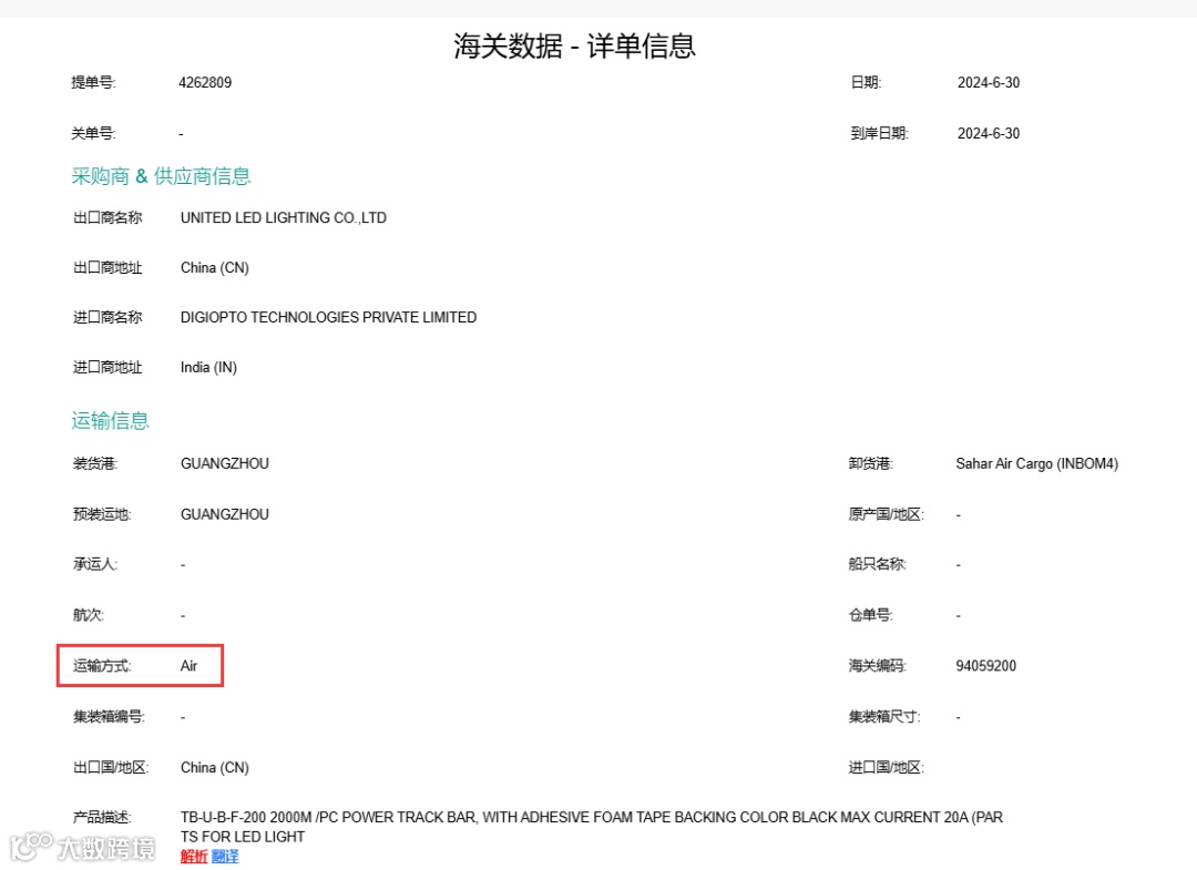 同时,海关数据,不局限于海运,美国墨西哥是海运,其他的基本都是海陆空都有,在我们的系统详单里,可以看到这个客户是通过运输方式。