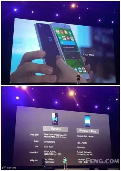 在新机发布会上拿 iPhone 来做对比并不是国人的专利,越南首款国产手机 BPhone(逼疯)发布了,采用 5 寸 1080p 屏,搭载骁龙 801 处理器,3GB RAM,500万+1300万像素摄像头,3000mAh 电池容量,售价1000万越南盾,约合人民币3000元。
