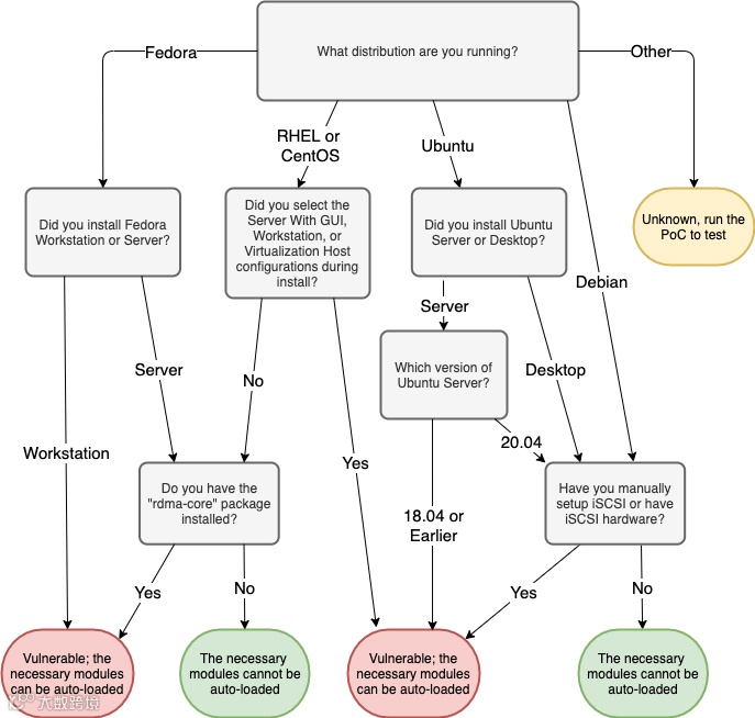 Nichols 补充道,“在 CentOS 8、RHEL 8 和 Fedora 系统中,低权限用户可自动加载所要求模块,前提是安装了 rdma-core 程序包。在 Debian 和 Ubuntu 系统上,rdma-core 程序包仅自动加载两个所要求的内核模块,前提是 RDMA 硬件可用。如此,该漏洞的影响范围更加有限。”