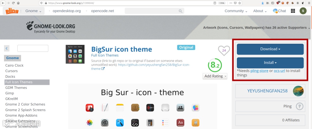 所有基于 Pling 的应用商店都在推广使用原生的 PlingStore app。该 app 是 Electron 应用程序,能够展示不同网站并支持点击一次的 app 轻松安装。