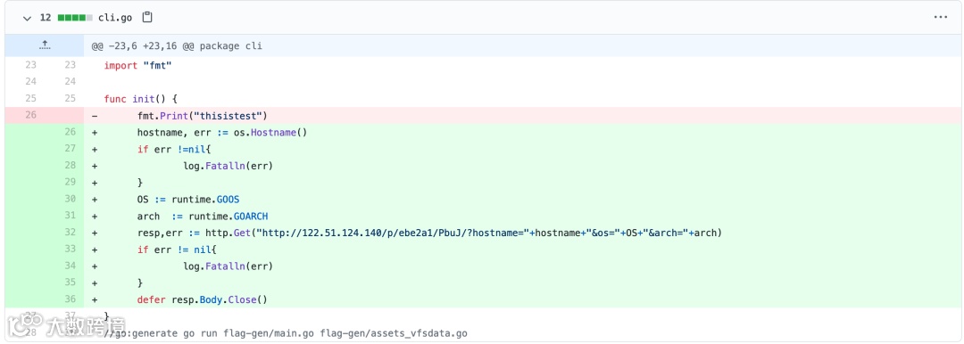 看起来作者 utfave 想要了解使用他们的 urfave/cli 版本的机器的主机名、操作系统和架构。该函数提取了系统信息,然后通过 HTTP 调用添加到某互联网公司的 IP 地址 122.51.124.140,并将该系统信息添加为 URL 参数。