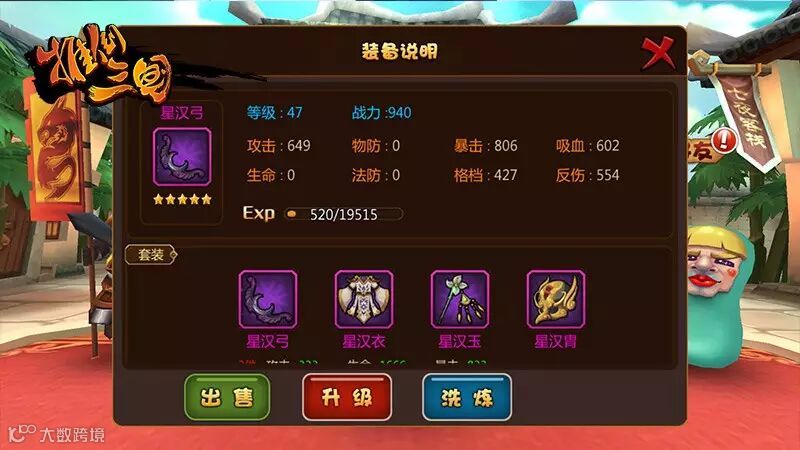 从绿色品质开始,就有了套装的概念,一个套装有4件,同时穿上2件、3件、4件都有额外的套装属性加成。不同套装侧重的属性加成各不相同,如蓝色武魂套装备2件以上会获得“反伤”加成,紫色青龙套会获得“格挡”加成,紫色星汉套加“暴击”可以带来恐怖的输出,紫色鬼神套的“吸血”则是脆皮DPS们确保持久战斗的福音!