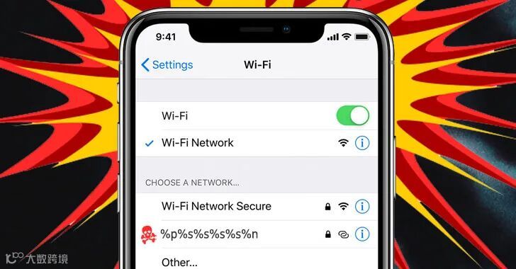Schou 发现,通过异常名称 “%p%s%s%s%s%n” 连接至 WiFi 网络时,手机的 WiFi 功能永久被禁,重启手机或更改网络名称(即服务设置标识符 SSID)也无济于事。