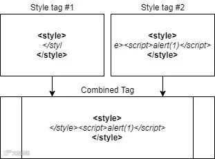 在测试该功能时,我最终的拦路虎是“<style>”标记。这个标记很有趣,因为 DOM只会取消末尾带有“<style>”标记的元素。也就是说,如果我们写入“<style><script>alert(1)</script></style>”,并在 DOM中完全渲染,则不会出现任何警报提示,因为从严格意义上来讲,该标记是 CSS样式,而“script”标记在标记内且不超过关闭标记的范围内填充。
