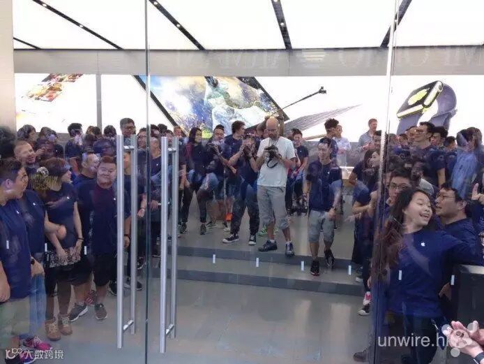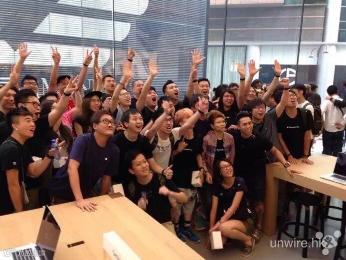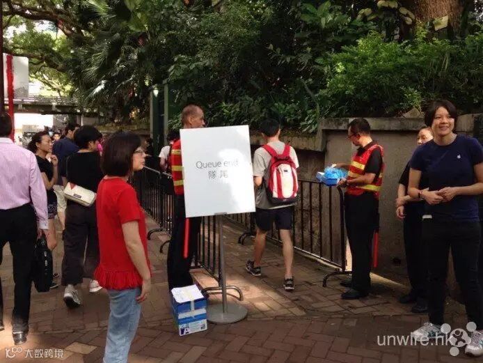 大约从早上 5 点开始便有不少果粉开始排队,为了防止插队现象的发生,现场还派发了手带。全新的广东道店是苹果在香港的第一家“街”店,类似于杭州西湖店,此前的 3 家零售店(铜锣湾店、IFC 店、又一城店)均位于商场内。