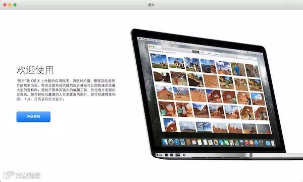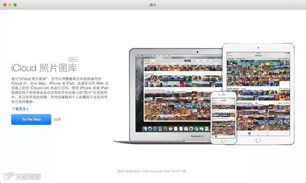 第一次打开照片应用,系统为向你简单介绍这个崭新的应用并询问是否开启 iCloud 照片图库(Beta 版),这里我们点击了“以后”。