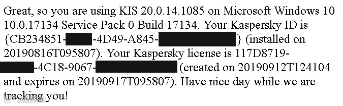 2019-08-19: 向卡巴斯基发送了另外两份报告:内部 API 仍然可被网页访问且它仍然泄露信息,而传递不合法的 URL 可能会引发拒绝服务攻击。披露最后期限定在2019年11月25日。