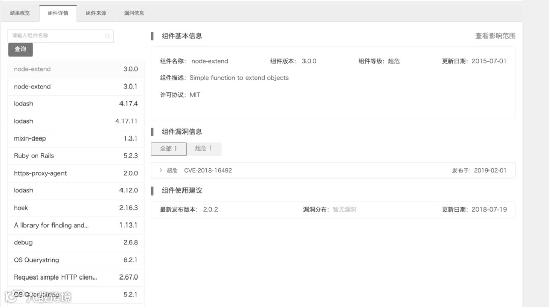 工具不扫描开源软件源代码,通过扫描包配置文件读取信息,进行依赖识别从而识别组件并识别许可证类型。此类工具扫描后得出的组件信息是自动确认的。