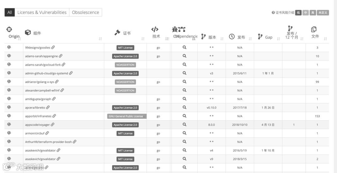 为什么要做开源治理呢?这要从开源的发展现状来说了。这些年来开源的热度可谓是持续增长,并且开源软件已经基本覆盖了关键技术领域,包括操作系统、云计算、大数据、人工智能等。但是同时我们也要看到因为开源许可证合规性风险和开源漏洞风险所造成的诉讼案件和纠纷也不断出现,企业就纷纷开始关注开源治理。2006年位于德国GmbH的D-Link德国分部因违反GPL开源许可协议被Linux有名开发者Welte起诉并且受到了惩罚。2016 年底,Artifex 公司因Hancom 违反AGPL开源许可协议向美国加利福尼亚北部地区法院发起诉讼。开源治理中必不可少的一环就是配套的开源治理工具了,市面上已经存在了不少的开源治理工具,但是这些工具具体有哪些功能?扫描原理是什么?扫描结果又是否相同?今天我们就来盘点一下。