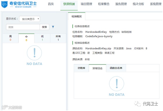 使用代码卫士对修复后的代码进行检测,可以看到已不存在“硬编码加密密钥”缺陷。如图2所示: