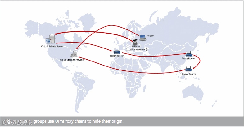 赛门铁克也报道称,检测到国家黑客组织 “Inception Framwork” 利用这种 UPnProxy 技术将自己的真实位置信息隐藏在代理云中。