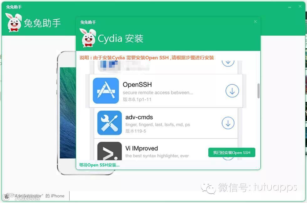 下载兔兔Cydia一键安装工具,连上电脑,小白也能分分钟搞定。