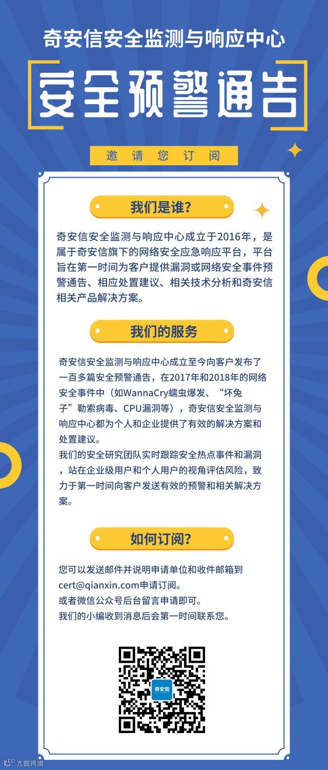 [2]. 2019年6月15日,奇安信安全监测与响应中心发布内部安全预警通告