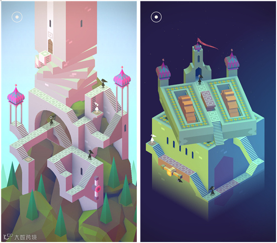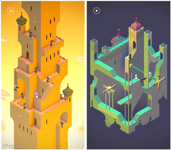 近些年来,视觉系游戏如雨后春笋般涌现,扁平化、剪影风等等层出不穷,由开发商ustwo制作的一款游戏同样也是主打清新视觉路线,不过它却很好地利用了三维空间绘画艺术家埃舍尔的创作理念,将平面与空间逻辑相结合,打造出了这款独特的益智闯关作品《纪念碑谷》(Monument Valley)。