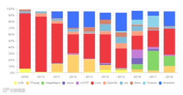 Linux 漏洞在 C 语言中占比最高,最为人熟知的是2016年年中被爆出的Image Tragic 漏洞。