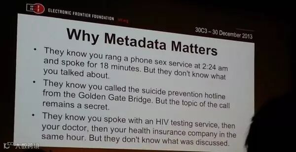 元数据跟你输入手持设备上的文字或者电话的通话没有太大关联,它追踪的是你在网上访问站点和下载文件而留下的痕迹。它能给互联网服务提供商、电信企业、欺诈者和政府部门提供关于用户的互联网活动情况。