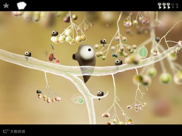 喝叶绿素喝醉了的大飞虫(戳它就会吐)、在两片叶子之间来回搬运果子的小触角、恶狠狠地挡在主角跟前不给过去的黑乎乎的家伙(我知道你没有恶意)、张着大嘴像喇叭一样发声的鸟(但愿它是鸟),还有不管从树枝里啄出什么东西都照吞不误的啄木“虫”,真不知道设计组是怎么想出这些生物的,为想象力点赞。
