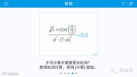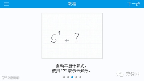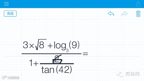 包括数字、运算符号在内的一切元素用户都可以用手写来输入,除了基础的加、减、乘、除、括号、幂、π等运算符号,一些比较高级的如log、正弦、余弦等也能够识别。还可以用来计算一些相对简单的一元一次方程,输入算式后计算器就会自动帮你显示所缺失的数字,相当方便。不过二元方程就没有办法做到了。