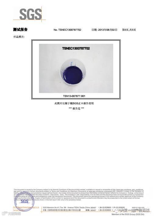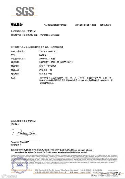 ▲ SGS机构针对大爱一通使用的环保墨水进行检测的报告结果,证实其为国家级别的环保型溶剂墨。