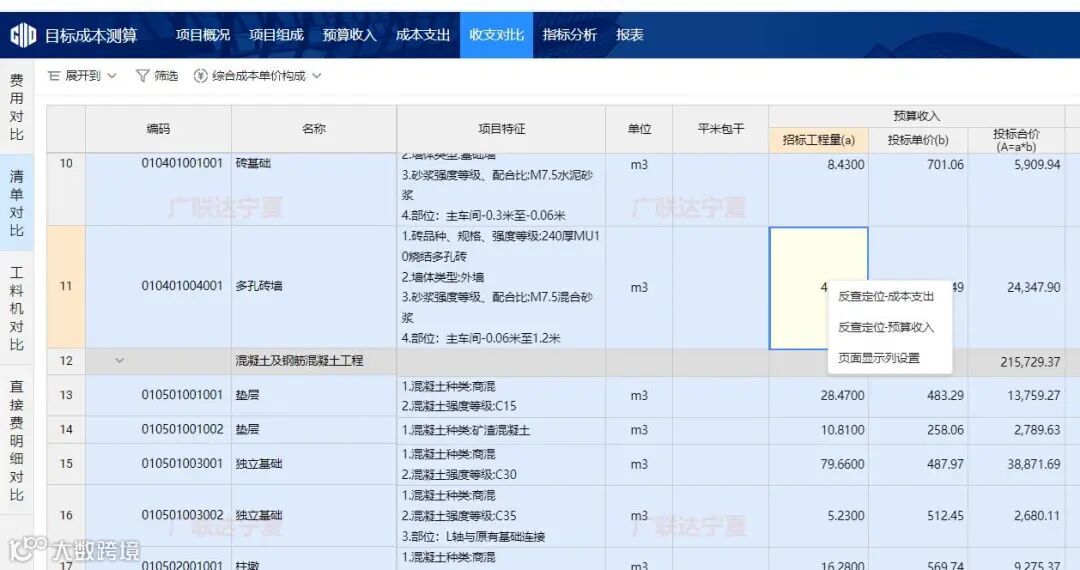 在标后测算阶段,甘肃三建利用多维度收支对比分析,有效指导商务策划、目标责任成本的制定。系统还支持数据穿透查询和精细化控量功能,帮助精准定位成本风险点并采取相应措施。