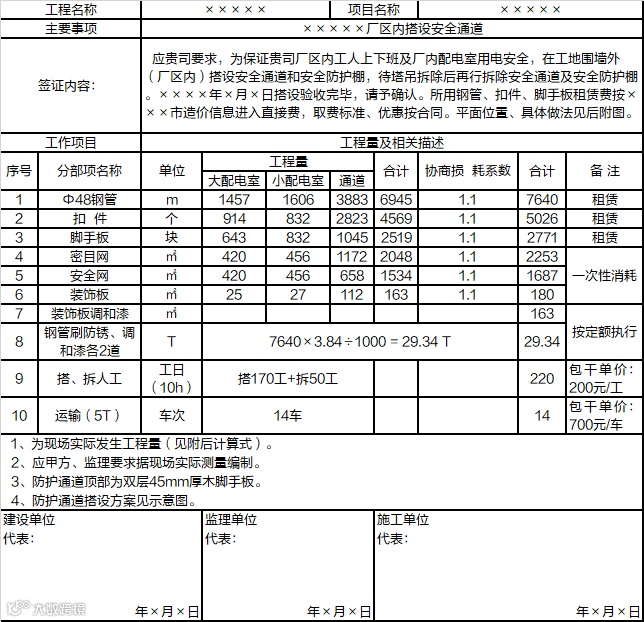 工 程 签 证 单