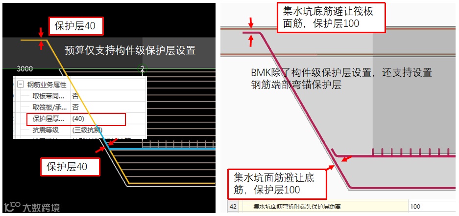 ③柱纵筋考虑与基础底部纵筋的安装层次关系,与梁纵筋顶部的安装层次关系。典型框架结构柱高3米,保护层弯折避让项节约比例可达2.8%。柱底部插筋计算,BMK考虑了保护层,长度减少8cm。柱顶部封顶钢筋计算, 考虑保护层扣减长度减少8cm。