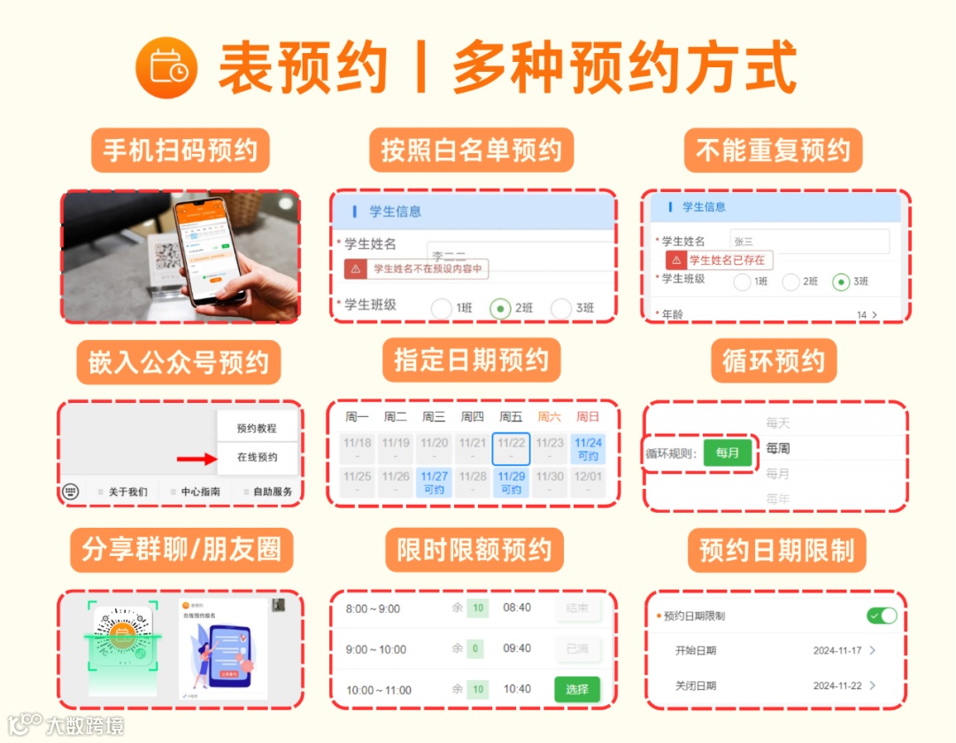 如果想了解更多表预约的相关功能或者操作步骤,包含功能性设置操作视频。点击下方图片进入表预约使用教程。