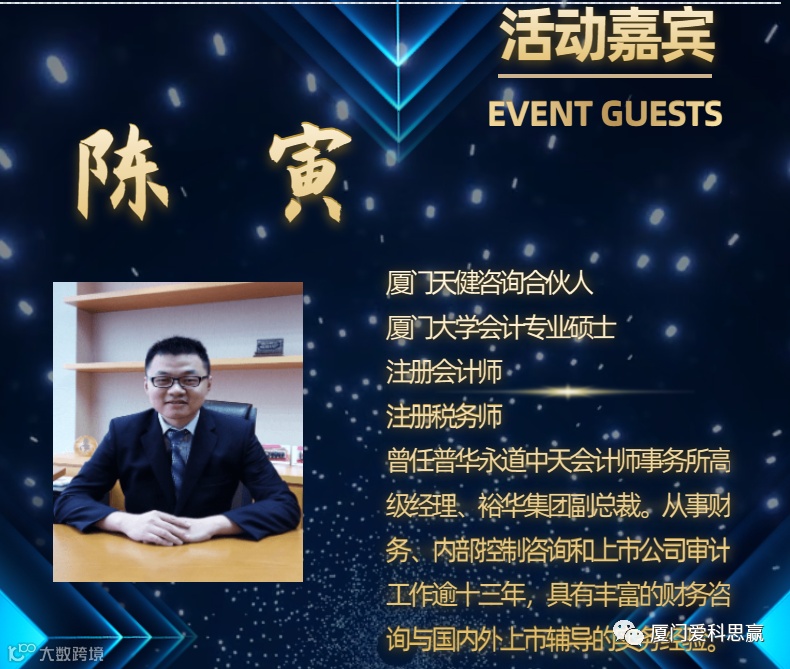 本次分享会,我们邀请了厦门天健咨询合伙人、资深财会专家——陈寅为我们分享企业上市前的财务规范与规划。