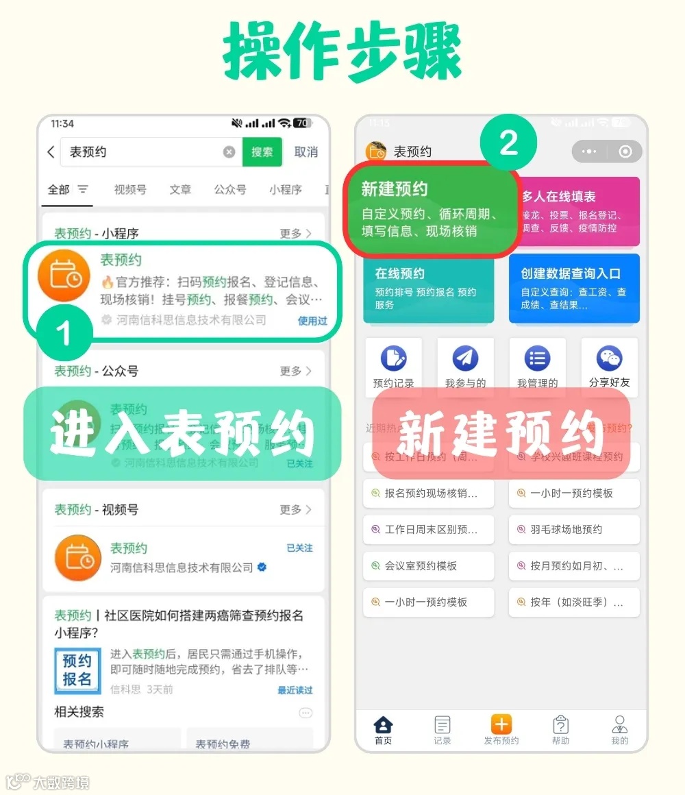1、微信搜索【表预约】小程序,进入小程序后,选择上方“新建预约”