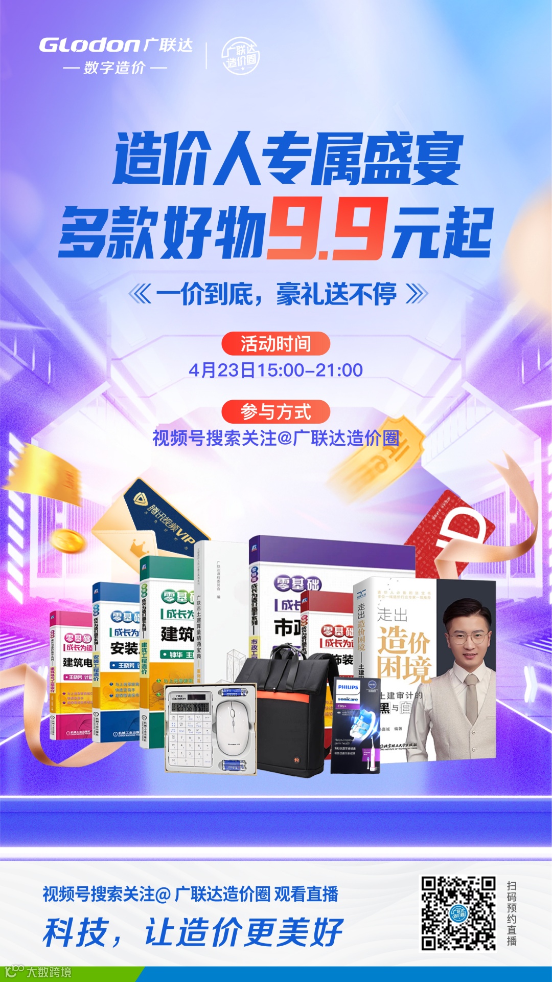 广联达造价圈粉丝团成员,参与福袋抽奖,即可获得飞利浦牙刷、双肩背包、广联达定制键鼠小套装等好礼。
